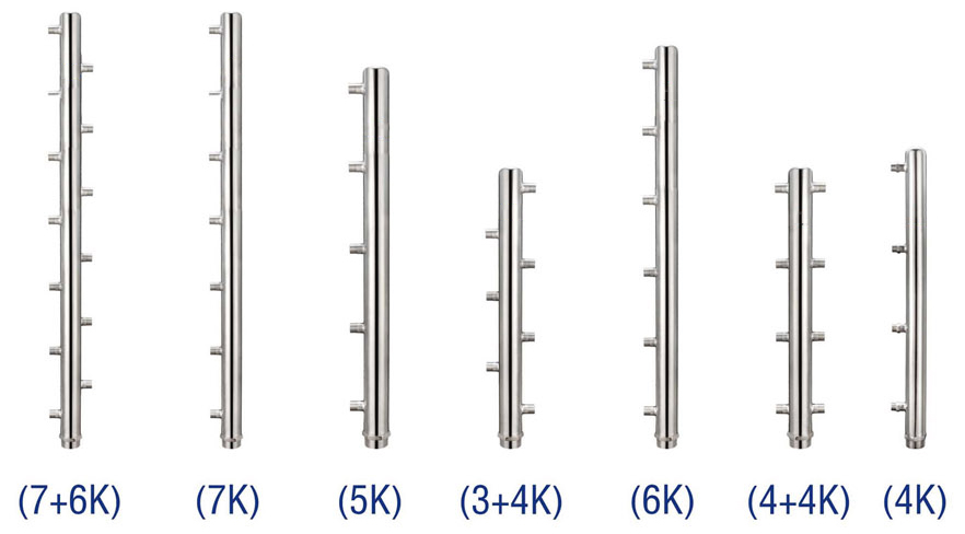 主水管为巾Ф32Ф159 (DN25DN150),进水口为G1/2"~G5" (DN25~DN150),分水口为G1/2”-G2"(DN15~DN50),分水口接头数量也可根据客户要求定制。